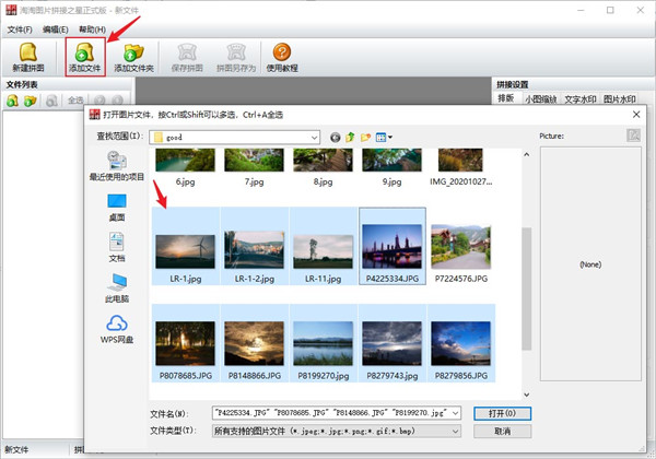 2、点击添加文件,选择需要拼接的图片。