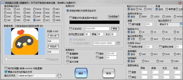 二、设置转换参数:可以指定输出格式、是否截取、是否需要添加水印、是否调整视频大小等等,更多设置参数如果不清楚可以保持默认设置。