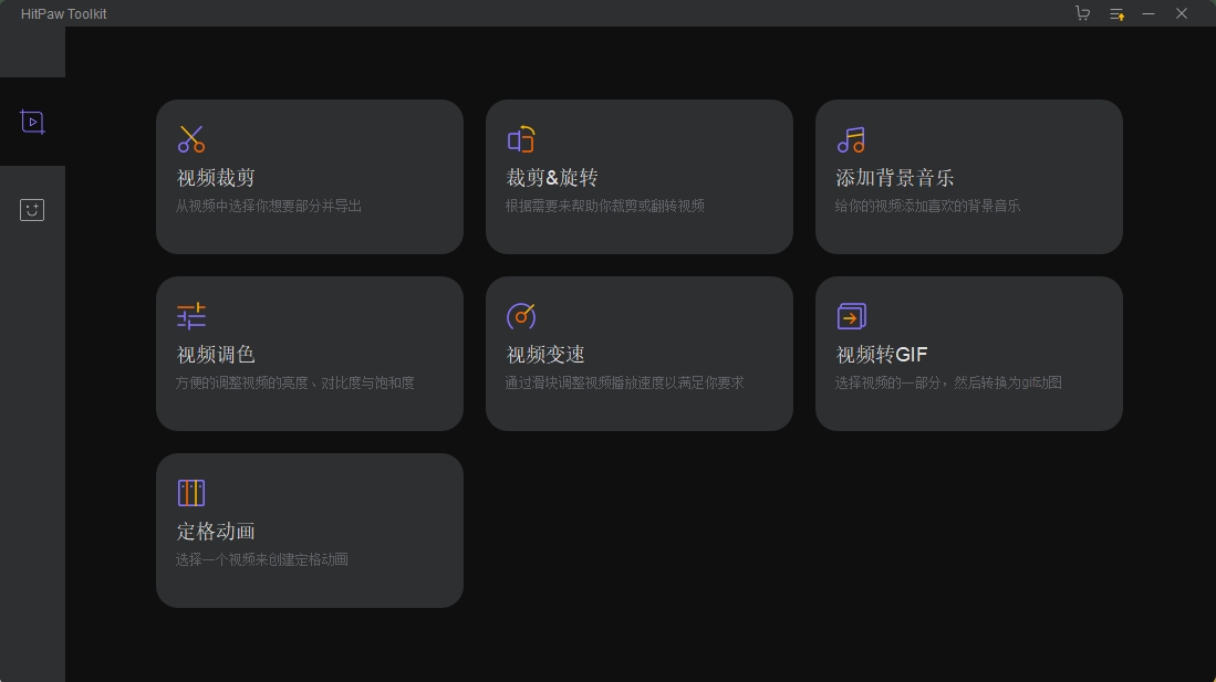 HitPaw Toolkit中文版是一款专业强大的视频编辑工具集,它可让用户快速处理视频,对其进行剪辑、旋转等操作,打造出所需的视频效果!并且,HitPaw Toolkit还支持字幕添加、水印去除、批量操作、调速、添加背景音乐、转换GIF格式等功能,满足用户的特效需求,还能将其转换为不同格式输出使用!有需要的用户欢迎下载使用。