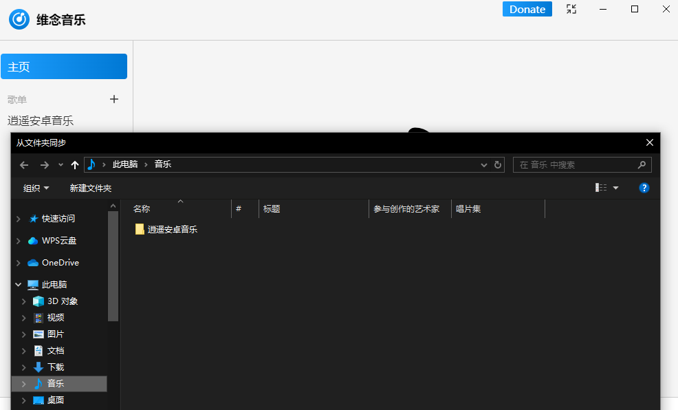 一、从文件夹同步 点击“从文件夹同步”,软件就会同步本地的音乐内容