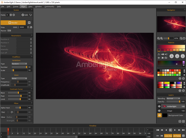 Amberlight 2官方版是由Escape Motions推出的一款方便实用、功能强大的粒子特效制作软件。Amberlight 2可以创建出精美的计算机图像和动画,支持数百万颗颗粒飞溅在您的画布上,您可以用特殊的领域来驱动它们。无论你是高深的艺术家还是新生的艺术初学者,都可以通过Amberlight来创建梦幻般的图像和运动图形。在电脑艺术世里面,它是一个独一无二的工具,将拓宽您的艺术视野揭开了非常新的艺术体验。Amberlight 2具有许多创新功能,包括高级动画模式、修饰词和变体。从现在开始,用户可以在他们的作品中创造生命保存为视频或图像序列的无瑕疵动画,