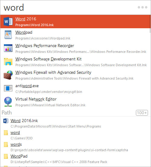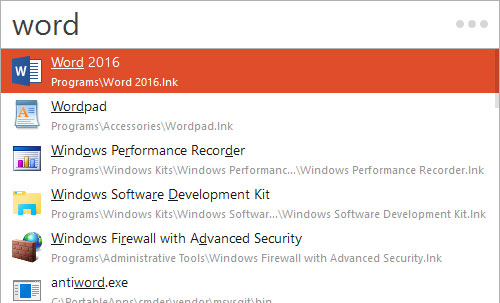 例如,单击Ctrl两次,然后键入“ Word”,Listary将打开Microsoft Word。或者,为PowerPoint输入“ pp”,为Photoshop输入“ ps”,瞧!Listary打开程序!