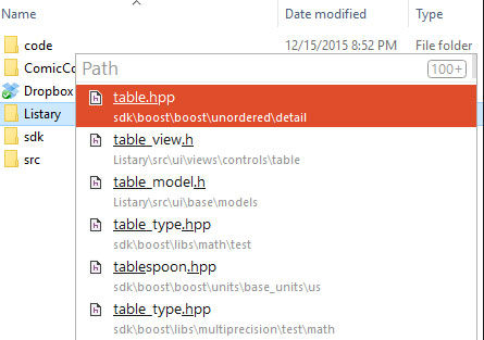 作为Listary最强大的搜索功能之一,您只需从Windows OS环境中的几乎任何地方开始键入所需文件或文件夹的名称即可。“键入时查找”功能会立即打开一个列表浏览器窗口,其中列出了匹配的文件,文件夹或应用程序。