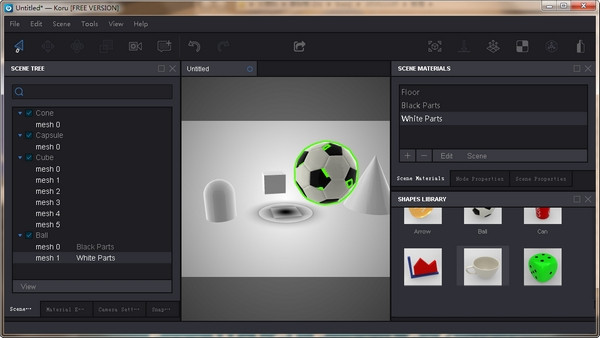 Koru允许您拍摄场景的快照。快照保存各种场景的方面,如对象位置、相机设置或材质。您可以制作不同的设计或场景布局和动画,只需单击一次就可以轻松地在它们之间切换。