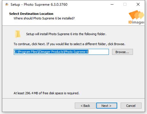 3、选择软件安装目录,默认为C:\Program Files\IDimager Products\Photo Supreme