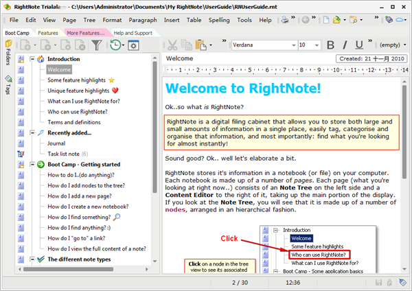 每个RightNote笔记本由任意数量的页面组成,每个页面都包含其自己的分层树状笔记。这样您就可以灵活地掌握您的笔记,以满足您的需要。