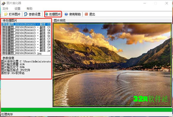 6、最后点击处理图片即可开始,图片越多处理需要的时间越多,你可以在左边的图片信息栏中查看图片处理的信息,处理的过程中请耐心等待即可