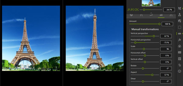 透视工具可帮助您消除这种变形并纠正照片中任何倾斜或偏斜的外观。如果听起来很复杂,请不要担心:该工具非常易于使用,具有三种自动设置,可以进行水平,垂直和完全校正。自动校正完成后,您可以使用简单的滑块自己进行最终调整。最后,如果您想完全控制该过程,还可以使用手动模式,在该模式下可以对照片应用指南以进行精确校正。
