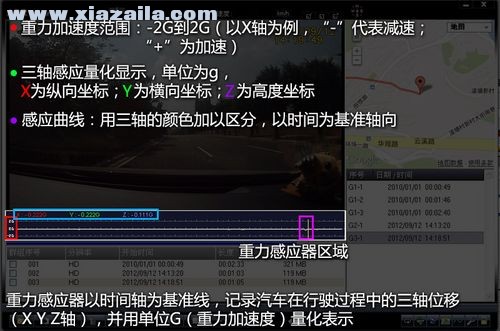 4、重力感应器说明:重力感应器的功能在发生紧急事故时非常有用,能够为相关人士提供有力的证据