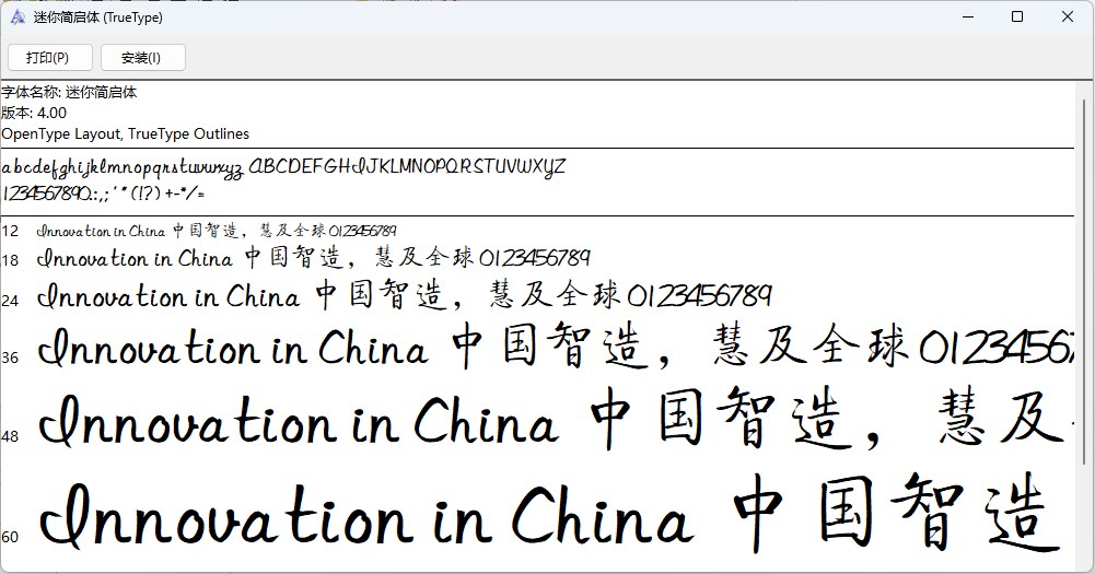 迷你简启体是著名的当代教育家气功所独有的字体,该字体算得上方正创作的一款常见字体,一招启功书法演变而来,在书法界,这种字体被称作“不仅是书家之书,更是学者之书、诗人之书,它渊雅而具古韵,饶有书卷气息;它隽永而兼洒脱,使观者觉得很有余味。因为这是从学问中来,从诗境中来的结果。”如果你喜欢启功体字体,那么赶紧下载使用吧。
