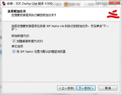 5、选择创建桌面快捷方式和默认模型浏览器;