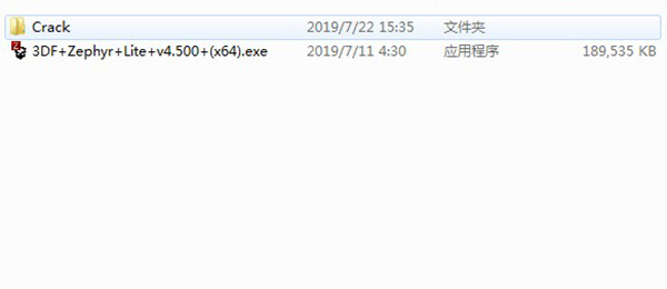 1、下载解压,得到3df zephyr lite 4.500原程序和crack文件;