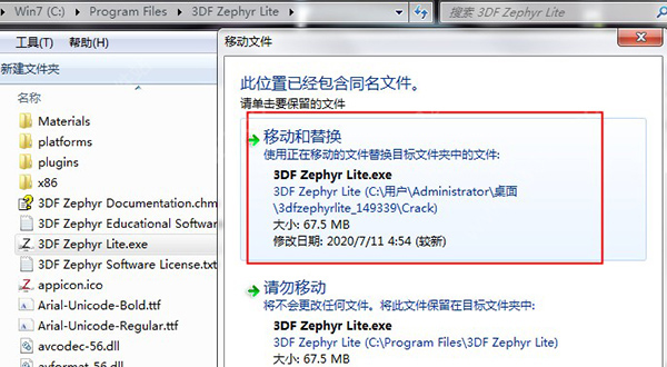 7、将补丁文件crack中的文件“3DF Zephyr Lite.exe”替换到安装目录;