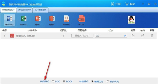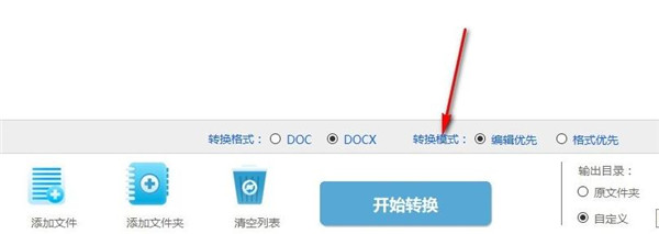 6、选择转换模式,可选择编辑优先,也可选择格式优先
