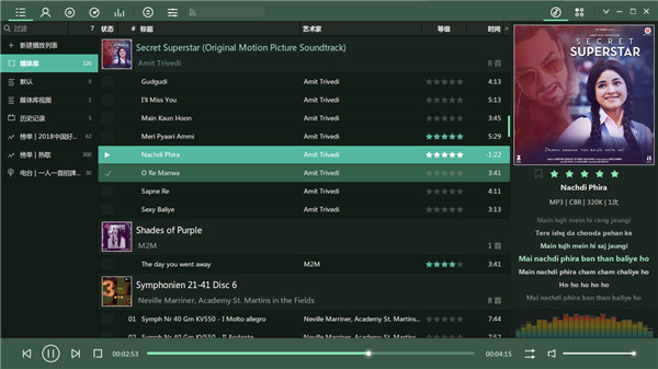 3、双击顶栏的音轨数目可激活正在播放项