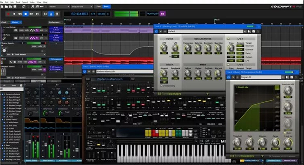 创建复杂的虚拟仪器设置的叠加和分割多个虚拟合成器和效果。设置键位,力度灵敏度,换位,平移和体积每件乐器。