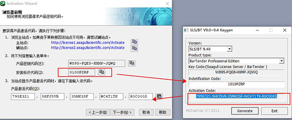 4、最后,只要将安装标识代码复制到注册机中就可以获得正确的激活码,填写会激活页面中就可以完成激活。