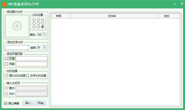 5、其中最为一提的是添加水印功能,你可以根据自身需求自定义添加图片、文字水印,并且可以设置水印位置、透明度、水印加强、并且还贴心的给出了禁止编辑选项,可以说非常的强大了;
