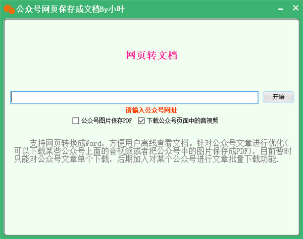 4、网页转文档。支持网页转换成Word,方便用户离线查看文档。针对公众号文章进行优化(可以下载某些公众号上面的音视频或者把公众号中的图片保存成PDF)