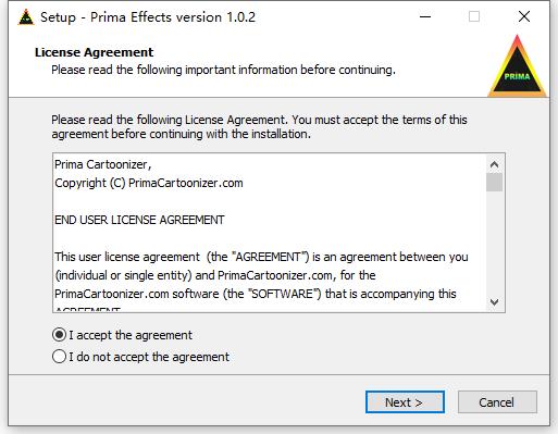 2、双击运行“PrimaEffects_Setup.exe”安装原程序,选择“English”,勾选我同意许可协议
