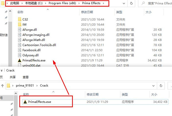 7、可将Crack文件下的“PrimaEffects.exe”复制到软件原安装目录下替换