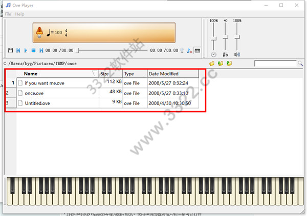 3、打开后,可以看到主界面上的所有ove格式琴谱。