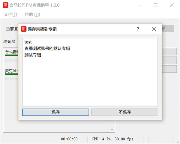 停止直播后,选择专辑点击’保存’后完成回听保存;或点击’不保存’取消回听保存。