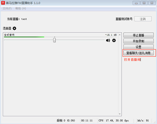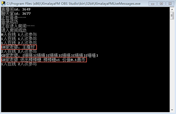 稍等一会等待连接聊天室。如果显示连接失败,关闭窗口,再次点击’查看聊天/送礼消息’。连接成功后,聊天消息和礼物消息如下图显示在窗口中: