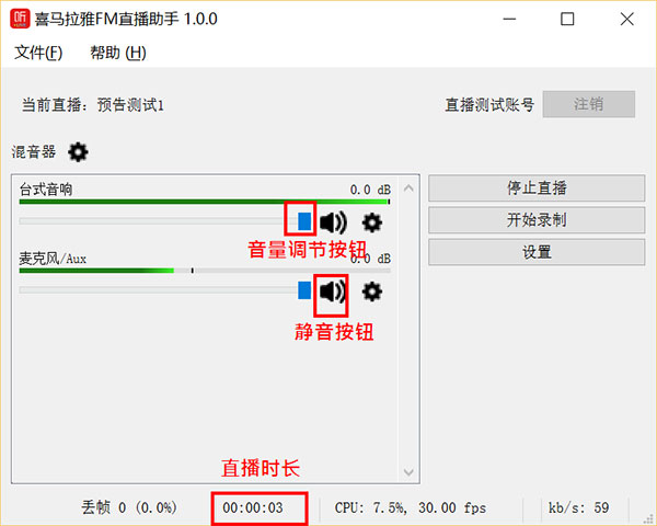 ③调整音量:该步骤调节的是听众收听到的声音,主播的设备操作由主播自行调节~