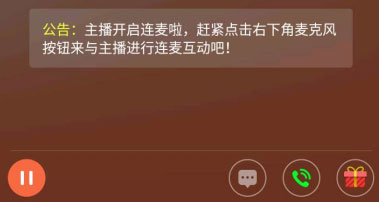 1、当主播开启连麦功能时,公屏上会已公告的形式提醒