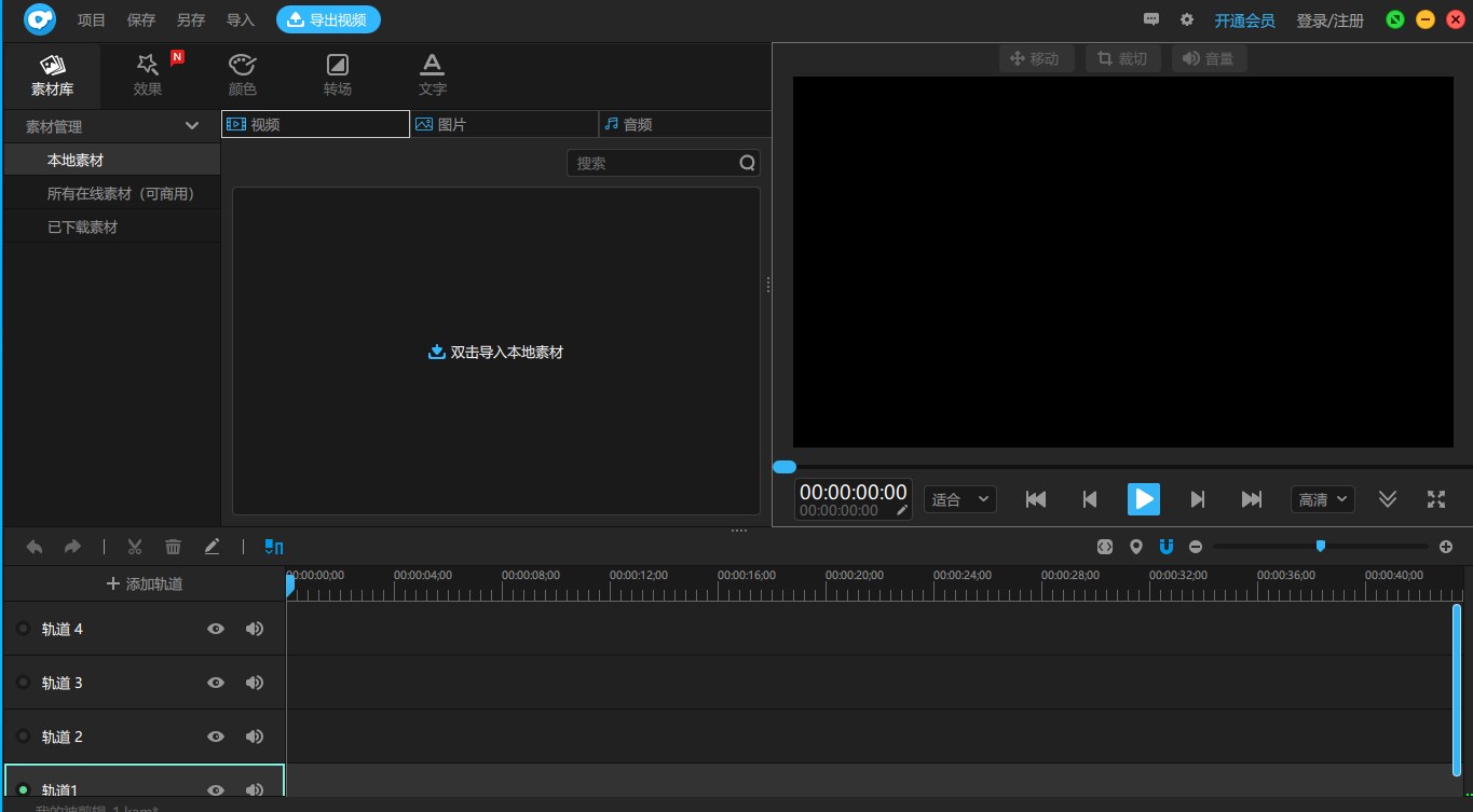 1、菜单栏:菜单栏有主菜单、保存、另存为、导出、登录、设置、窗口调节等按钮2、素材库:素材库是用作存放素材的地方,素材库所支持存放的素材有视频、音频、图片和粗剪后的视频音频素材,但要注意的是只有把素材库的素材拖拽到时间轴上才能进行剪辑