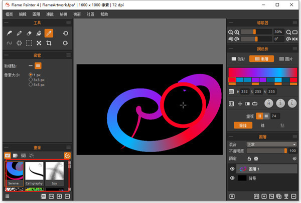 下一个 Flame Painter 版本的开创性功能是SVG 文件的导入- 可以将图层作为位图导入,也可以将多个图层作为矢量导入,可以根据您的需要进一步编辑。在画笔之间切换、在画笔创建器中编辑画笔或选择不同的颜色或渐变以匹配您的特定设计。笔触将自动应用于导入的矢量路径。这将使您的项目设计更加有趣并加快您的工作流程。