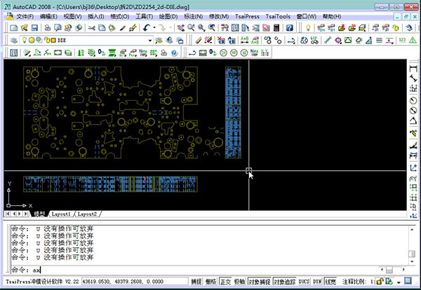 TsaiPress是昆山集思轩模具科技有限公司推出的一款功能强大、实用性强的专业级冲压模具设计软件。TsaiPress软件是基于AutoCAD二次开发,可安装于32位和64位的AutoCAD2004到2017之上。软件功能包含从产品展开、排样、模板绘制、标准件绘制……直至加工图纸注解输出、批量打印等一系列设计所要用到的一整套功能。TsaiPress软件操作简单,使用方便,深受用户的一致认可。另外tsaipress软件实现了智能化的冲模设计功能,支持线切割程序效果,更能够为用户实现折弯缩放数据功能,是目前比较前沿的设计软件,大大的缩短的了用户的开发时间带来了巨大的经济效益。是不是心动了呢,那还犹豫什么,有需要的朋友可以下载看看。