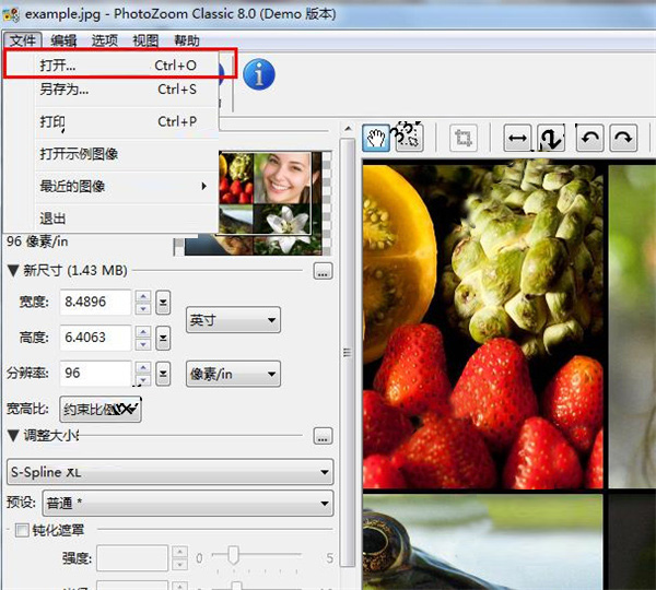 1、进入软件,单击左上角的打开,选择自己需要进行处理的图片。