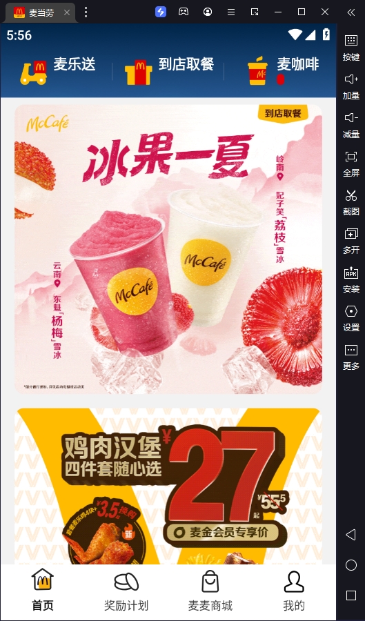 麦当劳电脑版是需要借助模拟器在电脑上运行的一款线上点餐软件。用户通过软件可以快速查找附近的麦当劳门店,了解营业时间、地址和联系方式,轻松浏览全套麦当劳菜单,选择自己喜爱的美食进行下单,更有麦乐送和到店自取服务让用户可以自由选择,享受极佳的点餐服务。