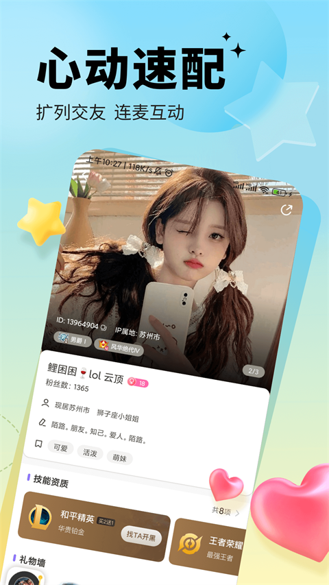 1、【游戏陪玩】 快速找到与你游戏风格相匹配的玩伴,汇集众多热门游戏(LOL、和平精英、绝地求生、王者荣耀、金铲铲等)大神,无论是寻求挑战还是休闲娱乐,总有合适的人选陪你一起游戏。 2、【游戏开黑】 创建或加入游戏小队,与朋友们一起开黑,无论是策略协作还是团队竞技,都能在这里找到归属感。 3、【找玩伴】 通过我们的智能推荐系统,轻松找到志同道合的游戏伙伴,让游戏不再孤单。内置的聊天功能让你与陪玩伙伴或游戏小队成员保持实时沟通,分享游戏心得,建立深厚的友谊。 4、【安全保障】 我们提供严格的陪玩审核机制和隐私保护措施,确保你的每一次游戏都是安全无忧的。更新日志