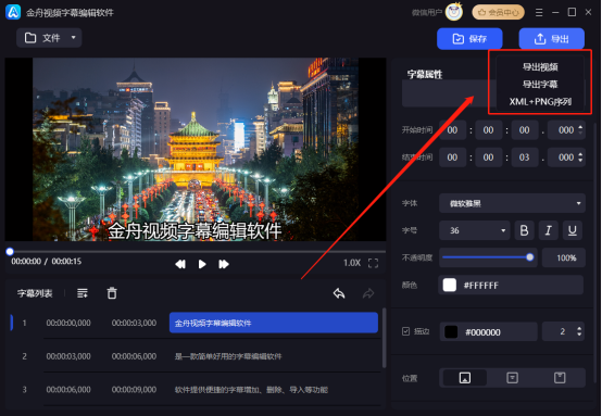 编辑视频字幕时,点击导出,可选择以下三种导出方式,根据自己的需要选择即可。