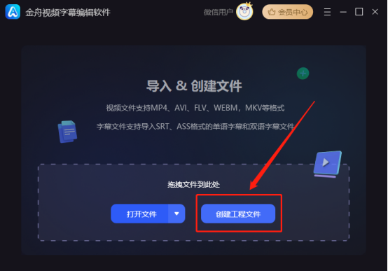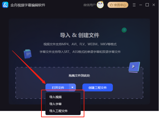 1、打开文件 用户可以直接导入本地视频,本地字幕和工程文件(.jzzm)进行编辑。