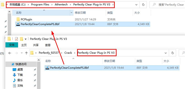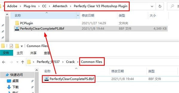 ③将Common Files文件夹中的PerfectlyClearCompletePS.8bf复制到以下目录位置进行替换