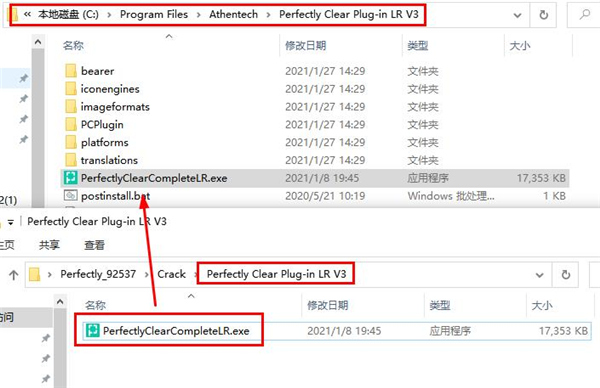 ④将Perfectly Clear Plug-in LR V3文件夹中的PerfectlyClearCompleteLR.exe复制到以下目录位置中替换