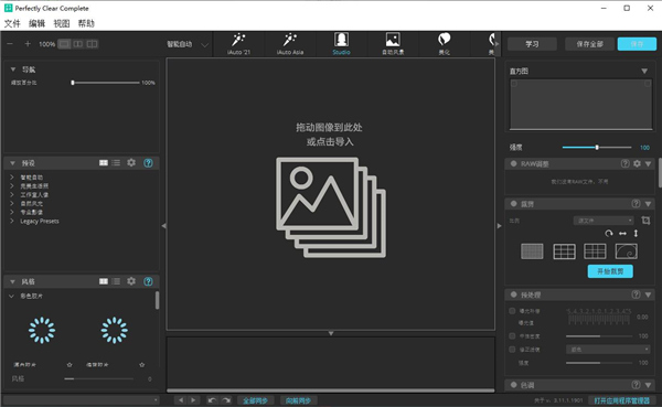 Athentech Perfectly Clear Complete可自动调整图片到准确的颜色、完美的曝光和保留所有细节等,能够帮助用户更好的编辑,简体中文字幕,不用担心看不懂软件界面。Athentech Perfectly Clear Complete包括所有校正功能、预设、创建自定义预设、批量处理无限数量的照片等等,可提供惊人的自动图像校正和强大的预设,用户批量处理图片也变得更加的方便。软件采用智能技术可以自动或手动模式修复缺陷,一键批量处理,通过快速简单的操作就可以将照片处理成高质量的漂亮照片,有需要的朋友欢迎下载体验。
