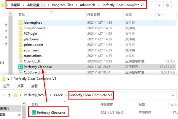 ①将crack文件夹下的Perfectly Clear Complete V3文件中的Perfectly Clear.exe复制到以下目录位置替换
