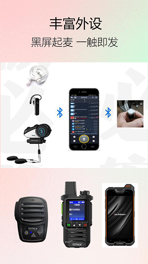 1、群组语音,不限距离,一呼百应; 2、自由创建频道,随时多人语聊; 3、频道口令保护,保证私密交流; 4、配合蓝牙手咪或线控/蓝牙耳机,使用更便捷! 5、HAM、自驾、骑行、出游、团队实时沟通?滔滔对讲都可以帮到你!使用教程