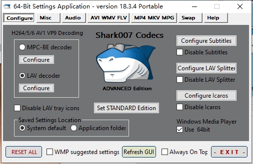 ADVANCED Codecs是由shark007出品的一套Windows的高级编解码器,当前版本支持4K,HDR <> SDR和3D解码。这是一套专用于Windows 7上面的解码包(XP/2003系统也适用),由外国网友制作,如同其他的解码包一样,你无需安装其他的Codec或者Filter,这个解码包囊括几乎所有常用支持格式的解码。