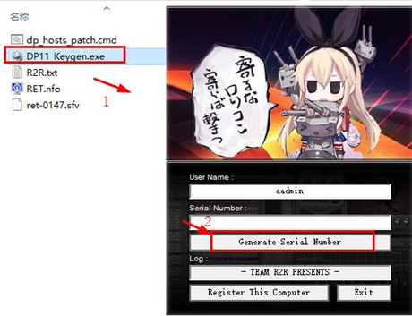4、接着打开R2R文件夹,以管理员的身份运行“DP11_Keygen.exe”注册机,再点击“Generate Serial Number”按钮生成激活码
