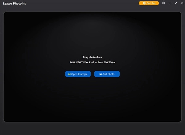 在您的计算机上启动 Leawo PhotoIns。然后导航到软件中的“添加照片”按钮,将计算机文件夹中的源图片添加到此 AI 照片增强器中。您还可以直接将源图像拖放到工具中。