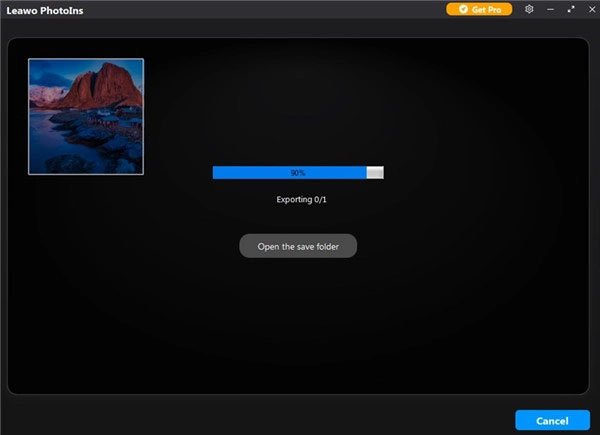 每当您希望终止导出过程时,请点击“取消”按钮。导出结束后,您可以点击“打开保存文件夹”按钮,进入包含所有输出AI增强图像的文件夹。获得完美的照片后,您可以将这些照片从计算机传输到 iPhone或其他便携式设备,以便随时随地查看。