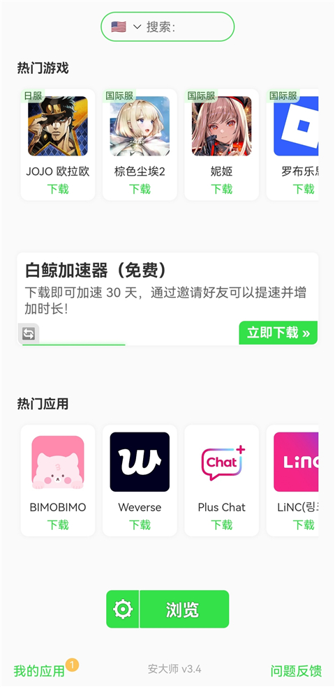 1、可以解决在安装国际服游戏时经常会遇到系统限制导致不兼容,或者安装后因不完整而导致闪退/黑屏/白屏/报错等问题。 2、支持.APK、.APKS、.APKM、.XAPK等安装包格式。 3、工具体量小且免费。更新日志