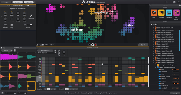Algonaut Atlas是由Algonaut官方打造的一款功能强大的采用AI的鼓式采样器。本款软件功能强大,操作简单,界面简洁,是一款非常专业的音频处理软件。它是一款使用广泛的使用人工智能制作节奏的音乐插件,通过该程序,您可以在一个地方看到所有的采样,并根据风格和特点绘制节奏地图,灵感来自用您自己的采样即时生成的无限鼓组。ATLAS会通过拖放到任何应用程序来加快您的工作流程,它将改变你发现声音和制作节奏的方式。在随机化中寻找灵感。Algonaut Atlas(AI的鼓式采样器)官方版点击一下,Atlas选择8个样本。单独锁定或热交换它们,冲洗并重复,使用组合控件调整它们的声音,使用包含的MIDI剪辑,它基本上就是最终的节拍采样器!