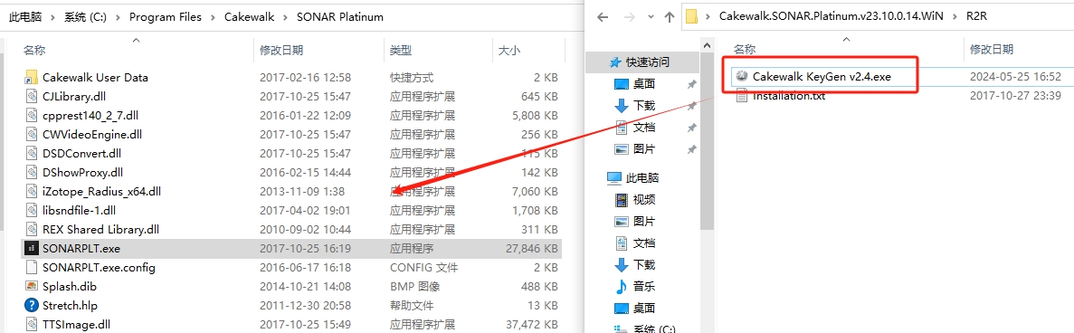 6、将“Cakewalk KeyGen v2.4.exe”复制到“SONAR Platinum”的安装目录下。默认安装目录为“C:\Program Files\Cakewalk\SONAR Platinum”。